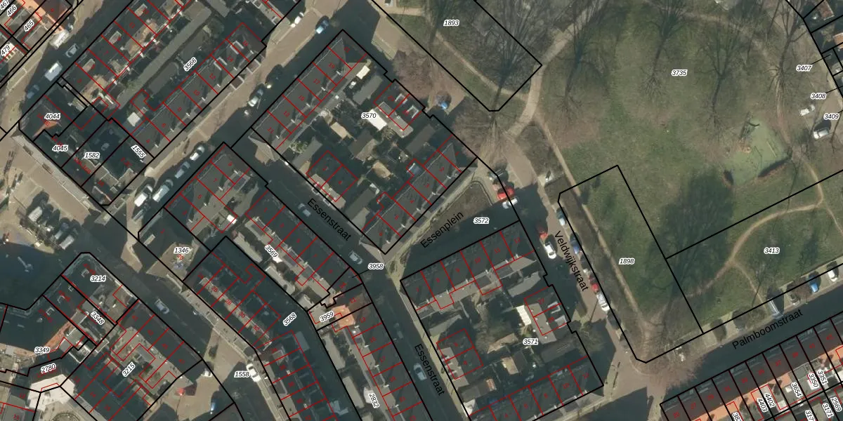 Het perceel waarop Essenplein 4 staat heeft een oppervlakte van 1395 m². Dit is een zeer groot perceel. De perceeloppervlakte wordt geregistreerd door het Kadaster. Gedetailleerde informatie over de maten van dit perceel kunt u vinden in het rapport Kadastrale kaart met maatvoering van Essenplein 4.