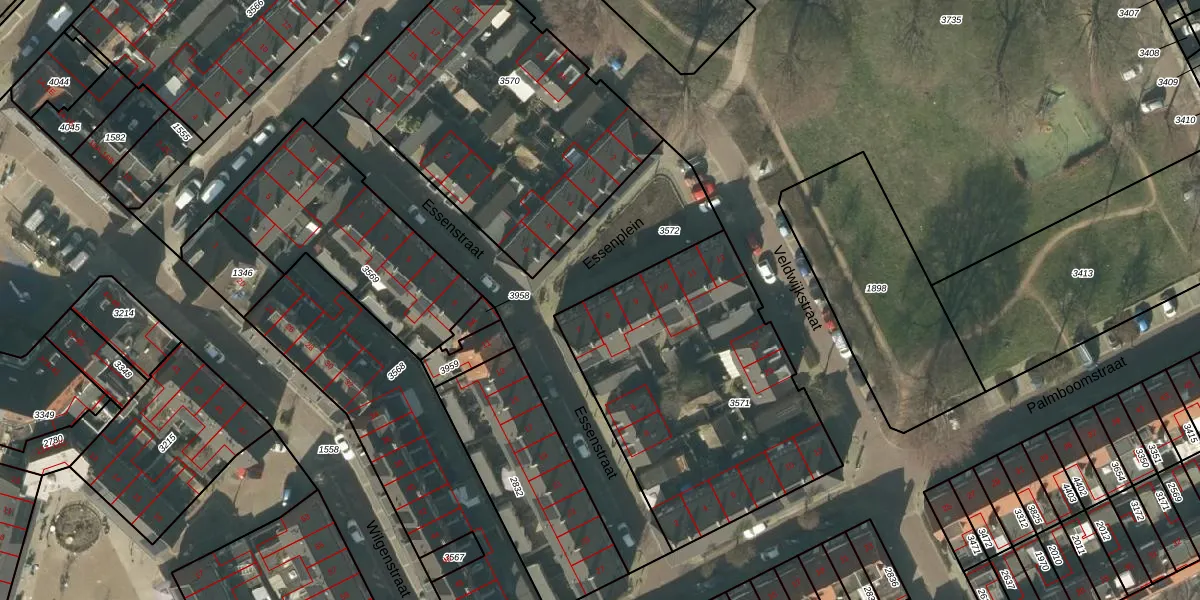 Het perceel waarop Essenplein 8 staat heeft een oppervlakte van 1396 m². Dit is een zeer groot perceel. De perceeloppervlakte wordt geregistreerd door het Kadaster. Gedetailleerde informatie over de maten van dit perceel kunt u vinden in het rapport Kadastrale kaart met maatvoering van Essenplein 8.
