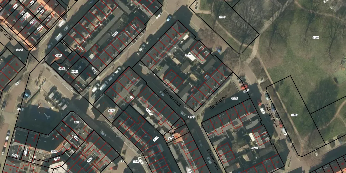 Het perceel waarop Essenstraat 4 staat heeft een oppervlakte van 1395 m². Dit is een zeer groot perceel. De perceeloppervlakte wordt geregistreerd door het Kadaster. Gedetailleerde informatie over de maten van dit perceel kunt u vinden in het rapport Kadastrale kaart met maatvoering van Essenstraat 4.