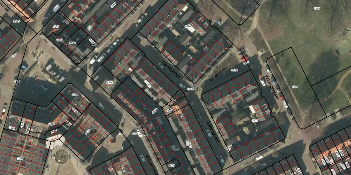Essenstraat 9 is gelegen op kadastraal perceel HTG00C3569. Deze kadastrale aanduiding is uniek en wordt gebruikt door het Kadaster om eigendomsrechten en andere zakelijke rechten vast te leggen. Het perceel maakt onderdeel uit van de kadastrale gemeente 's-Hertogenbosch.