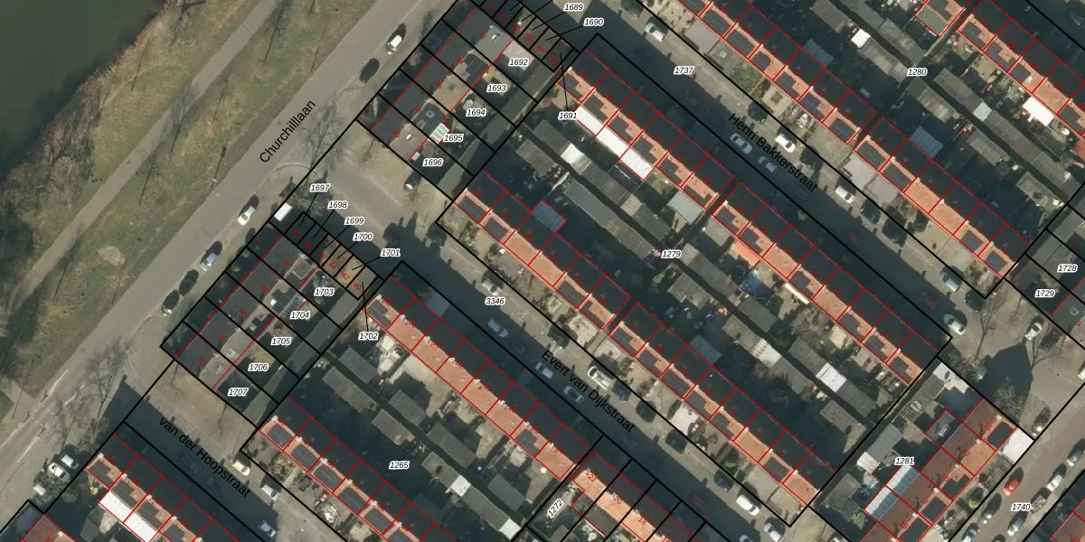 Het perceel waarop Evert van Dijkstraat 23 staat heeft een oppervlakte van 3956 m². Dit is een zeer groot perceel. De perceeloppervlakte wordt geregistreerd door het Kadaster. Gedetailleerde informatie over de maten van dit perceel kunt u vinden in het rapport Kadastrale kaart met maatvoering van Evert van Dijkstraat 23.