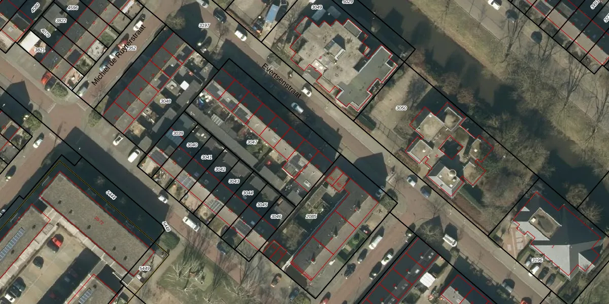Het perceel waarop Evertsenstraat 12 staat heeft een oppervlakte van 1104 m². Dit is een zeer groot perceel. De perceeloppervlakte wordt geregistreerd door het Kadaster. Gedetailleerde informatie over de maten van dit perceel kunt u vinden in het rapport Kadastrale kaart met maatvoering van Evertsenstraat 12.