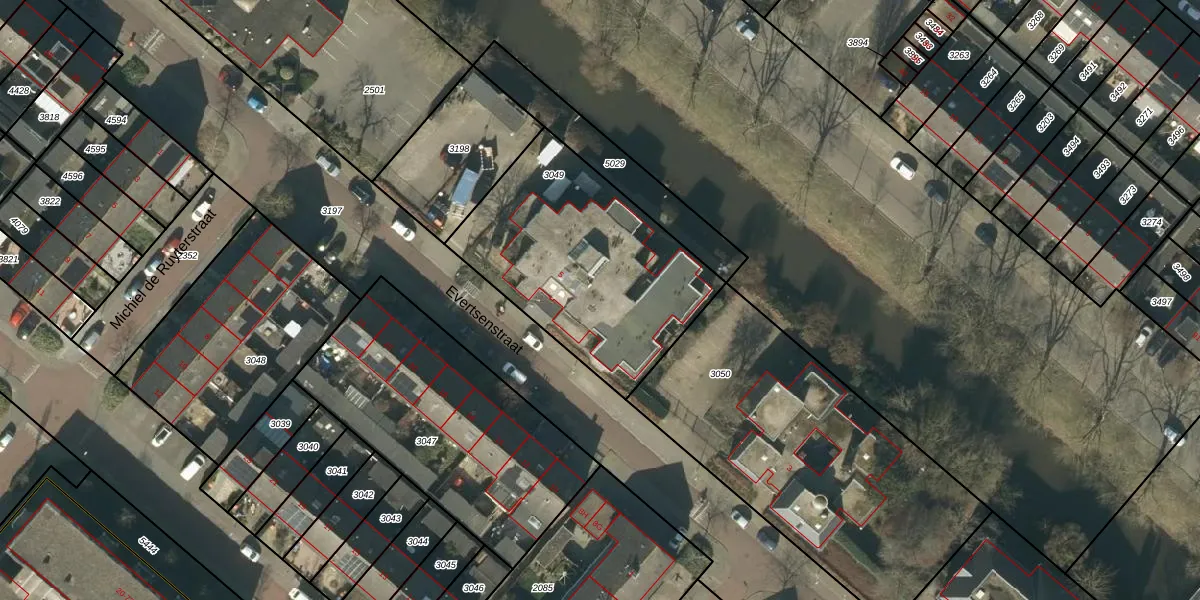 Het perceel waarop Evertsenstraat 13-F staat heeft een oppervlakte van 1027 m². Dit is een zeer groot perceel. De perceeloppervlakte wordt geregistreerd door het Kadaster. Gedetailleerde informatie over de maten van dit perceel kunt u vinden in het rapport Kadastrale kaart met maatvoering van Evertsenstraat 13-F.