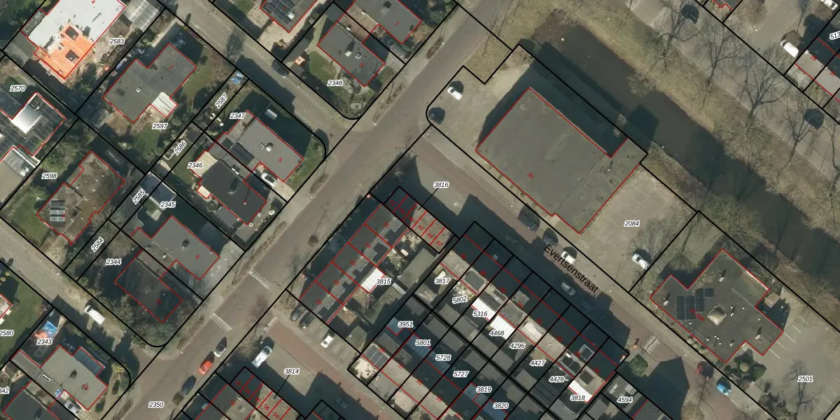 Het perceel waarop Evertsenstraat 48 staat heeft een oppervlakte van 102 m². Dit is een middelgroot perceel. De perceeloppervlakte wordt geregistreerd door het Kadaster. Gedetailleerde informatie over de maten van dit perceel kunt u vinden in het rapport Kadastrale kaart met maatvoering van Evertsenstraat 48.
