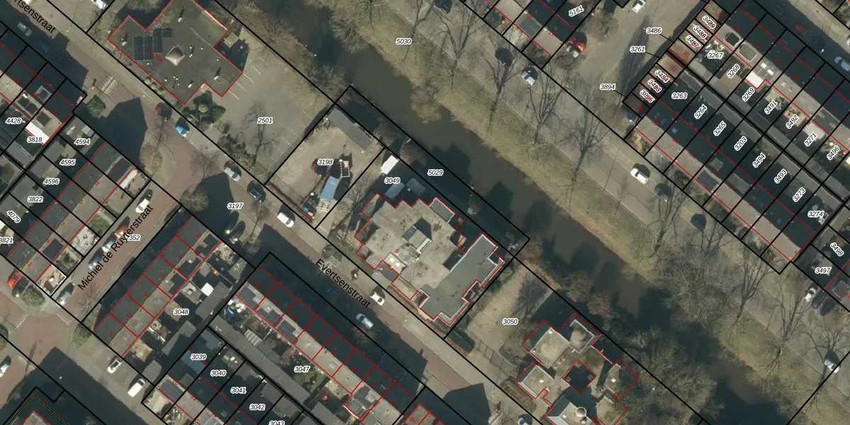 Het perceel waarop Evertsenstraat 7-D staat heeft een oppervlakte van 1027 m². Dit is een zeer groot perceel. De perceeloppervlakte wordt geregistreerd door het Kadaster. Gedetailleerde informatie over de maten van dit perceel kunt u vinden in het rapport Kadastrale kaart met maatvoering van Evertsenstraat 7-D.