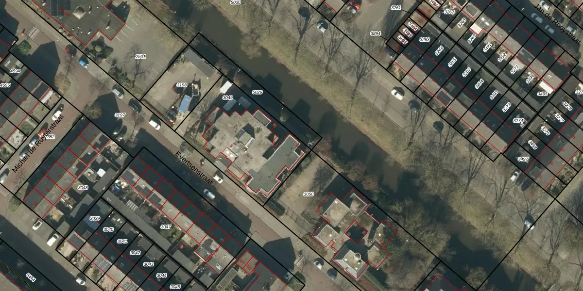 Het perceel waarop Evertsenstraat 9-A staat heeft een oppervlakte van 1027 m². Dit is een zeer groot perceel. De perceeloppervlakte wordt geregistreerd door het Kadaster. Gedetailleerde informatie over de maten van dit perceel kunt u vinden in het rapport Kadastrale kaart met maatvoering van Evertsenstraat 9-A.