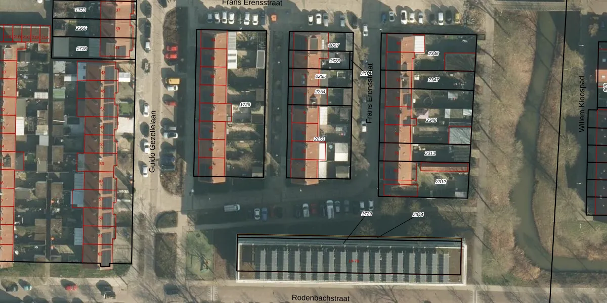 Het perceel waarop Frans Erensstraat 13 staat heeft een oppervlakte van 510 m². Dit is een groot perceel. De perceeloppervlakte wordt geregistreerd door het Kadaster. Gedetailleerde informatie over de maten van dit perceel kunt u vinden in het rapport Kadastrale kaart met maatvoering van Frans Erensstraat 13.