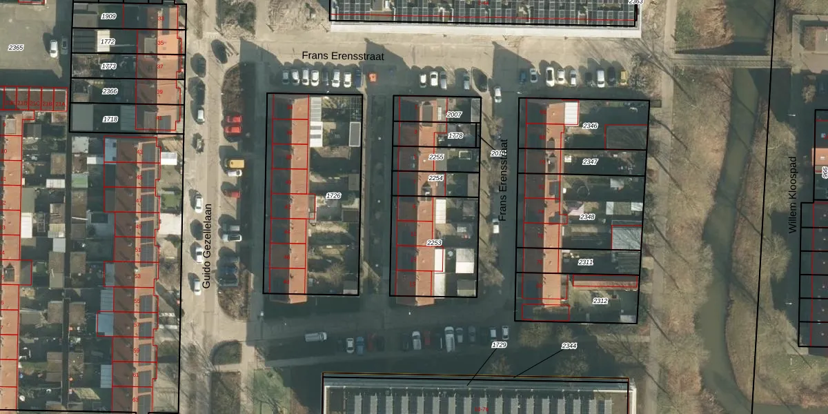 Het perceel waarop Frans Erensstraat 9 staat heeft een oppervlakte van 510 m². Dit is een groot perceel. De perceeloppervlakte wordt geregistreerd door het Kadaster. Gedetailleerde informatie over de maten van dit perceel kunt u vinden in het rapport Kadastrale kaart met maatvoering van Frans Erensstraat 9.