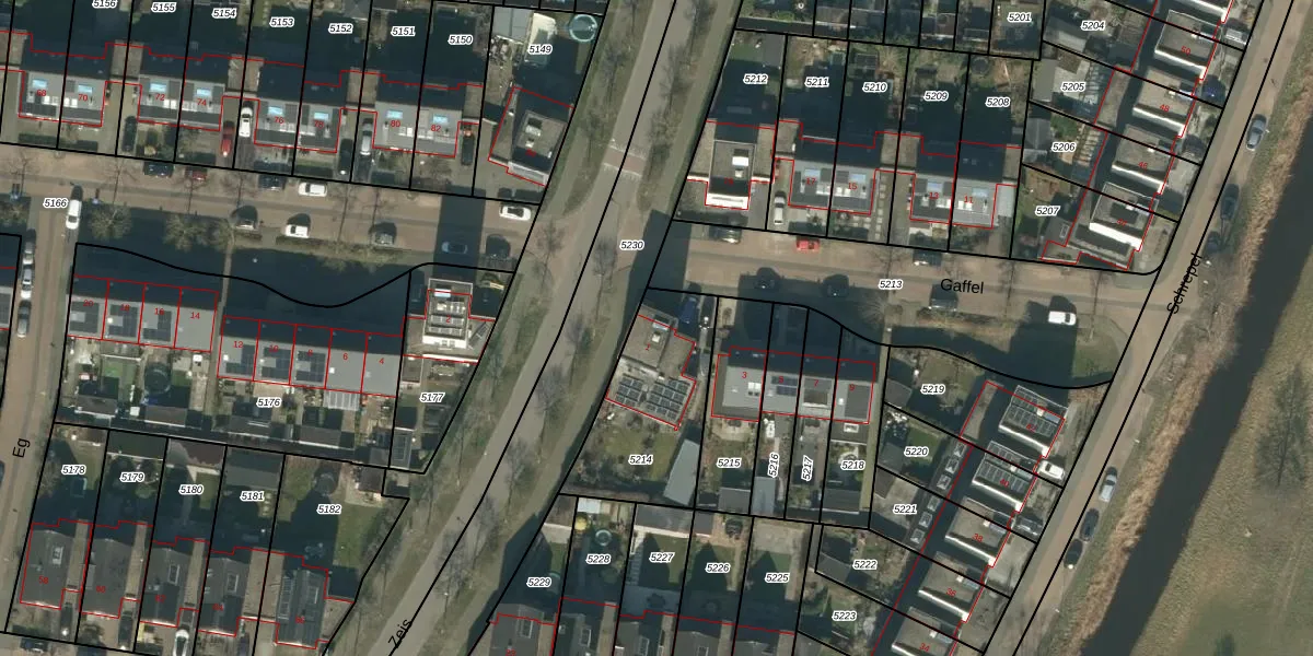Het perceel waarop Gaffel 1 staat heeft een oppervlakte van 508 m². Dit is een groot perceel. De perceeloppervlakte wordt geregistreerd door het Kadaster. Gedetailleerde informatie over de maten van dit perceel kunt u vinden in het rapport Kadastrale kaart met maatvoering van Gaffel 1.