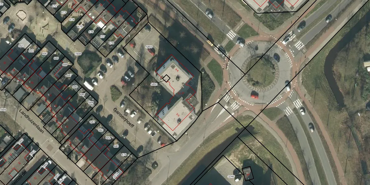 Het perceel waarop Gansenhoeff 23 staat heeft een oppervlakte van 1532 m². Dit is een zeer groot perceel. De perceeloppervlakte wordt geregistreerd door het Kadaster. Gedetailleerde informatie over de maten van dit perceel kunt u vinden in het rapport Kadastrale kaart met maatvoering van Gansenhoeff 23.