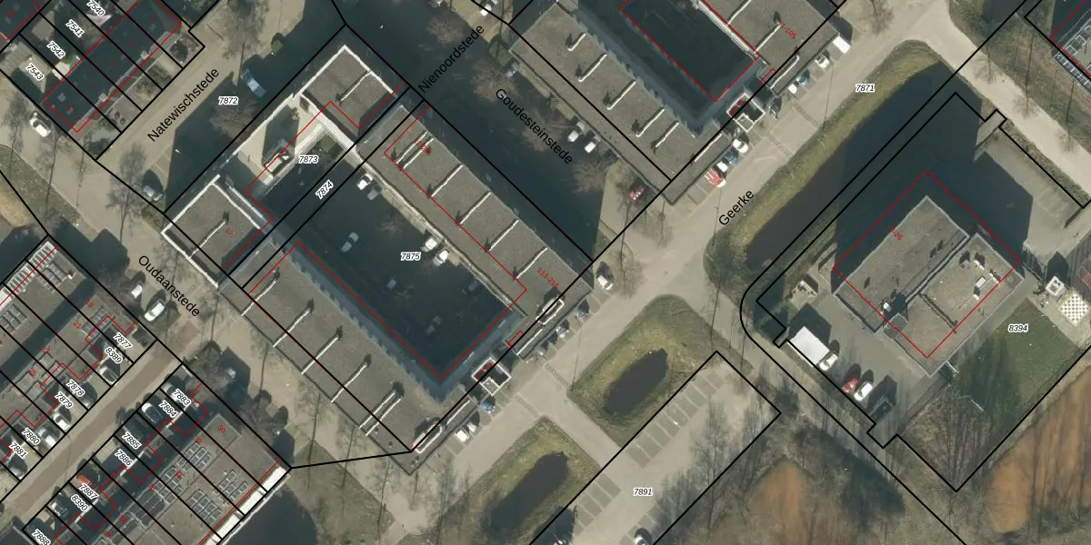 Het perceel waarop Geerke 119 staat heeft een oppervlakte van 2070 m². Dit is een zeer groot perceel. De perceeloppervlakte wordt geregistreerd door het Kadaster. Gedetailleerde informatie over de maten van dit perceel kunt u vinden in het rapport Kadastrale kaart met maatvoering van Geerke 119.