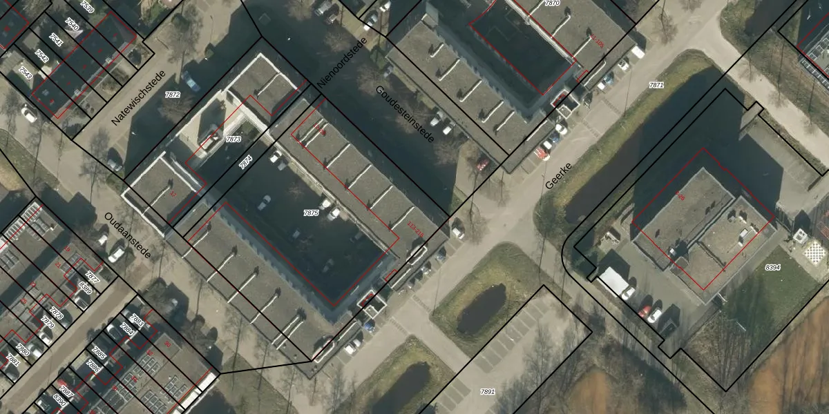 Het perceel waarop Geerke 141 staat heeft een oppervlakte van 2070 m². Dit is een zeer groot perceel. De perceeloppervlakte wordt geregistreerd door het Kadaster. Gedetailleerde informatie over de maten van dit perceel kunt u vinden in het rapport Kadastrale kaart met maatvoering van Geerke 141.