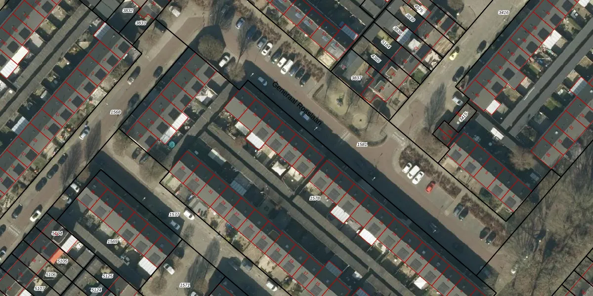 Het perceel waarop Generaal Rosslaan 28 staat heeft een oppervlakte van 5873 m². Dit is een zeer groot perceel. De perceeloppervlakte wordt geregistreerd door het Kadaster. Gedetailleerde informatie over de maten van dit perceel kunt u vinden in het rapport Kadastrale kaart met maatvoering van Generaal Rosslaan 28.