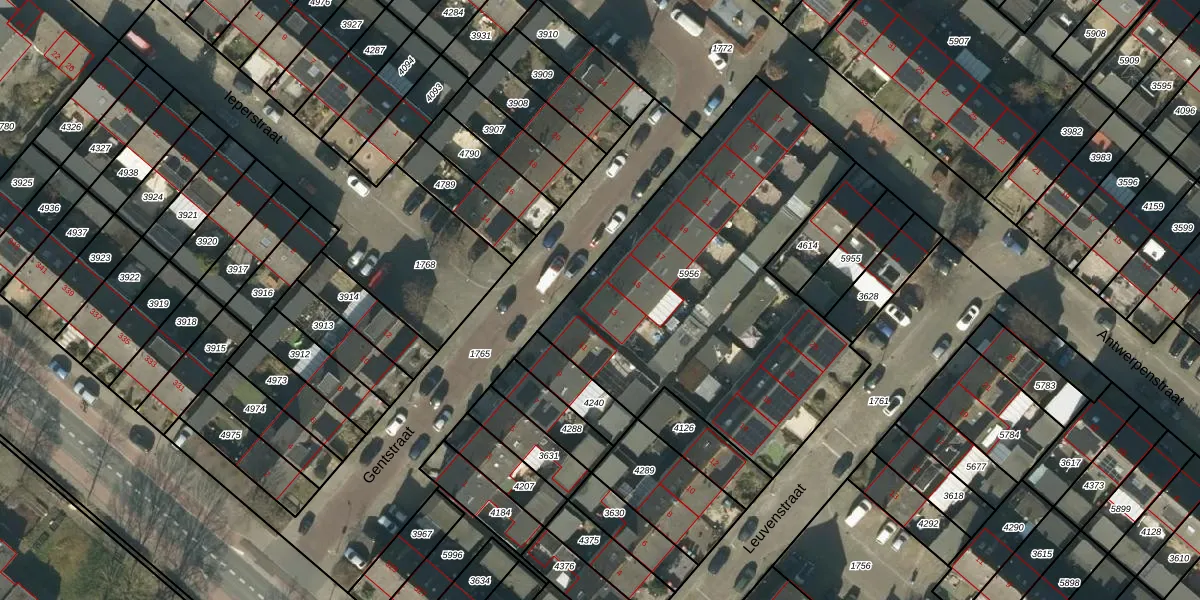Het perceel waarop Gentstraat 13 staat heeft een oppervlakte van 1846 m². Dit is een zeer groot perceel. De perceeloppervlakte wordt geregistreerd door het Kadaster. Gedetailleerde informatie over de maten van dit perceel kunt u vinden in het rapport Kadastrale kaart met maatvoering van Gentstraat 13.