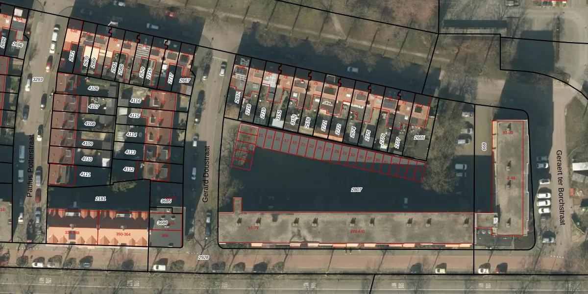 Het perceel waarop Gerard Doustraat 19 staat heeft een oppervlakte van 3475 m². Dit is een zeer groot perceel. De perceeloppervlakte wordt geregistreerd door het Kadaster. Gedetailleerde informatie over de maten van dit perceel kunt u vinden in het rapport Kadastrale kaart met maatvoering van Gerard Doustraat 19.