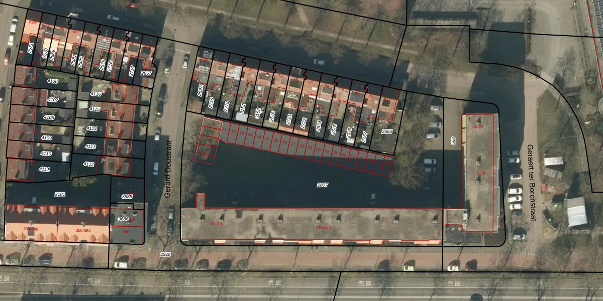 Het perceel waarop Gerard Doustraat 29 staat heeft een oppervlakte van 3475 m². Dit is een zeer groot perceel. De perceeloppervlakte wordt geregistreerd door het Kadaster. Gedetailleerde informatie over de maten van dit perceel kunt u vinden in het rapport Kadastrale kaart met maatvoering van Gerard Doustraat 29.