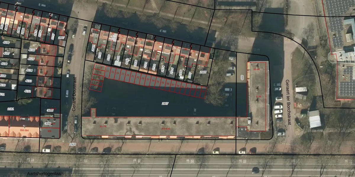 Gerard Doustraat 39 is gelegen op kadastraal perceel HTG00C2807. Deze kadastrale aanduiding is uniek en wordt gebruikt door het Kadaster om eigendomsrechten en andere zakelijke rechten vast te leggen. Het perceel maakt onderdeel uit van de kadastrale gemeente 's-Hertogenbosch.