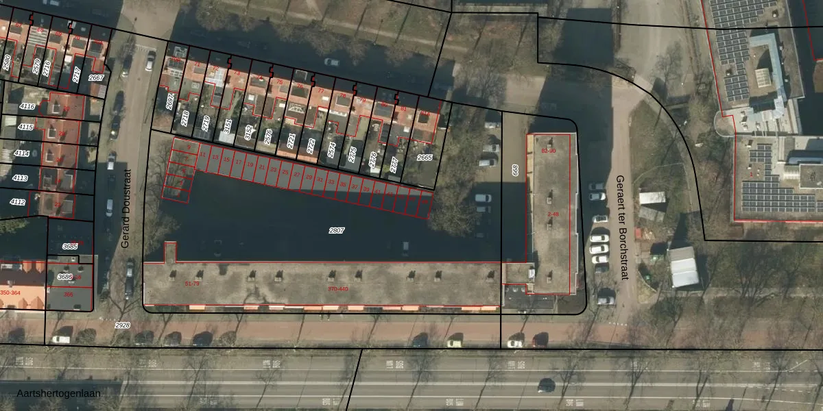 Gerard Doustraat 47 is gelegen op kadastraal perceel HTG00C2807. Deze kadastrale aanduiding is uniek en wordt gebruikt door het Kadaster om eigendomsrechten en andere zakelijke rechten vast te leggen. Het perceel maakt onderdeel uit van de kadastrale gemeente 's-Hertogenbosch.