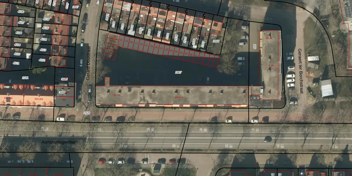 Het perceel waarop Gerard Doustraat 63 staat heeft een oppervlakte van 3475 m². Dit is een zeer groot perceel. De perceeloppervlakte wordt geregistreerd door het Kadaster. Gedetailleerde informatie over de maten van dit perceel kunt u vinden in het rapport Kadastrale kaart met maatvoering van Gerard Doustraat 63.