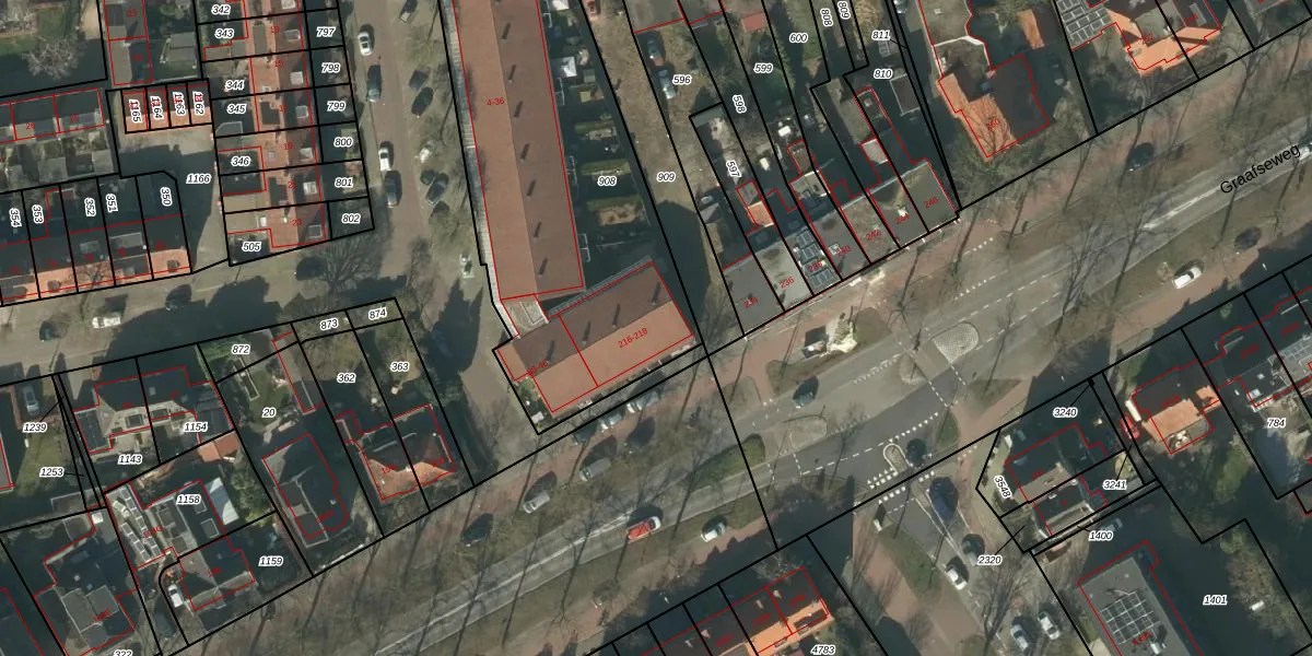 Graafseweg 218 is gelegen op kadastraal perceel HTG00M908. Deze kadastrale aanduiding is uniek en wordt gebruikt door het Kadaster om eigendomsrechten en andere zakelijke rechten vast te leggen. Het perceel maakt onderdeel uit van de kadastrale gemeente 's-Hertogenbosch.