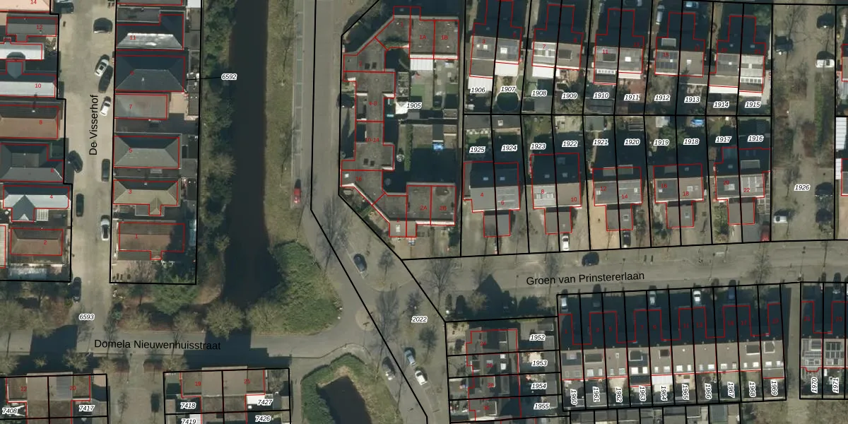 Het perceel waarop Groen van Prinstererlaan 2-A staat heeft een oppervlakte van 1658 m². Dit is een zeer groot perceel. De perceeloppervlakte wordt geregistreerd door het Kadaster. Gedetailleerde informatie over de maten van dit perceel kunt u vinden in het rapport Kadastrale kaart met maatvoering van Groen van Prinstererlaan 2-A.