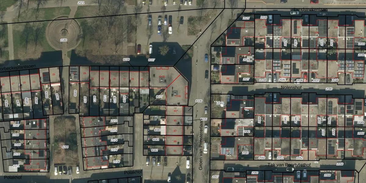 Groen van Prinstererlaan 73 is gelegen op kadastraal perceel HTG00T8077. Deze kadastrale aanduiding is uniek en wordt gebruikt door het Kadaster om eigendomsrechten en andere zakelijke rechten vast te leggen. Het perceel maakt onderdeel uit van de kadastrale gemeente 's-Hertogenbosch.