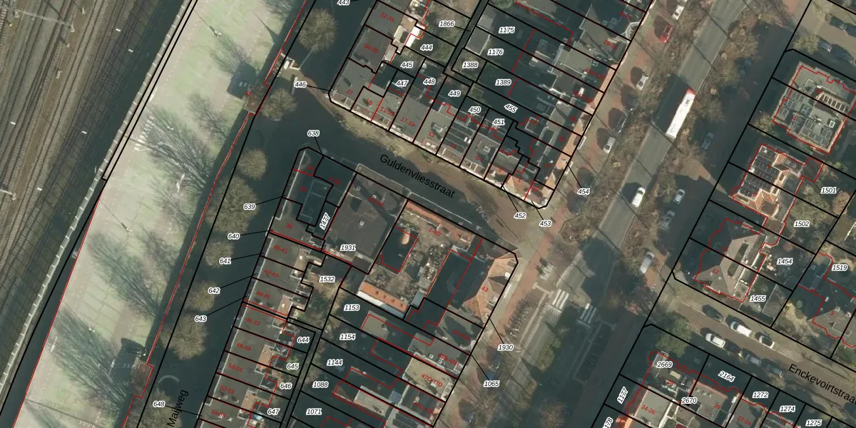 Het perceel waarop Guldenvliesstraat 2-M staat heeft een oppervlakte van 670 m². Dit is een groot perceel. De perceeloppervlakte wordt geregistreerd door het Kadaster. Gedetailleerde informatie over de maten van dit perceel kunt u vinden in het rapport Kadastrale kaart met maatvoering van Guldenvliesstraat 2-M.