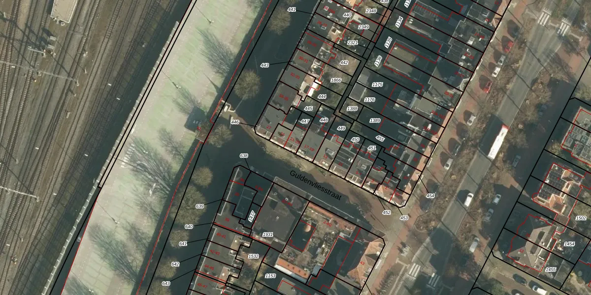 Het perceel waarop Guldenvliesstraat 23 staat heeft een oppervlakte van 95 m². Dit is een klein perceel. De perceeloppervlakte wordt geregistreerd door het Kadaster. Gedetailleerde informatie over de maten van dit perceel kunt u vinden in het rapport Kadastrale kaart met maatvoering van Guldenvliesstraat 23.