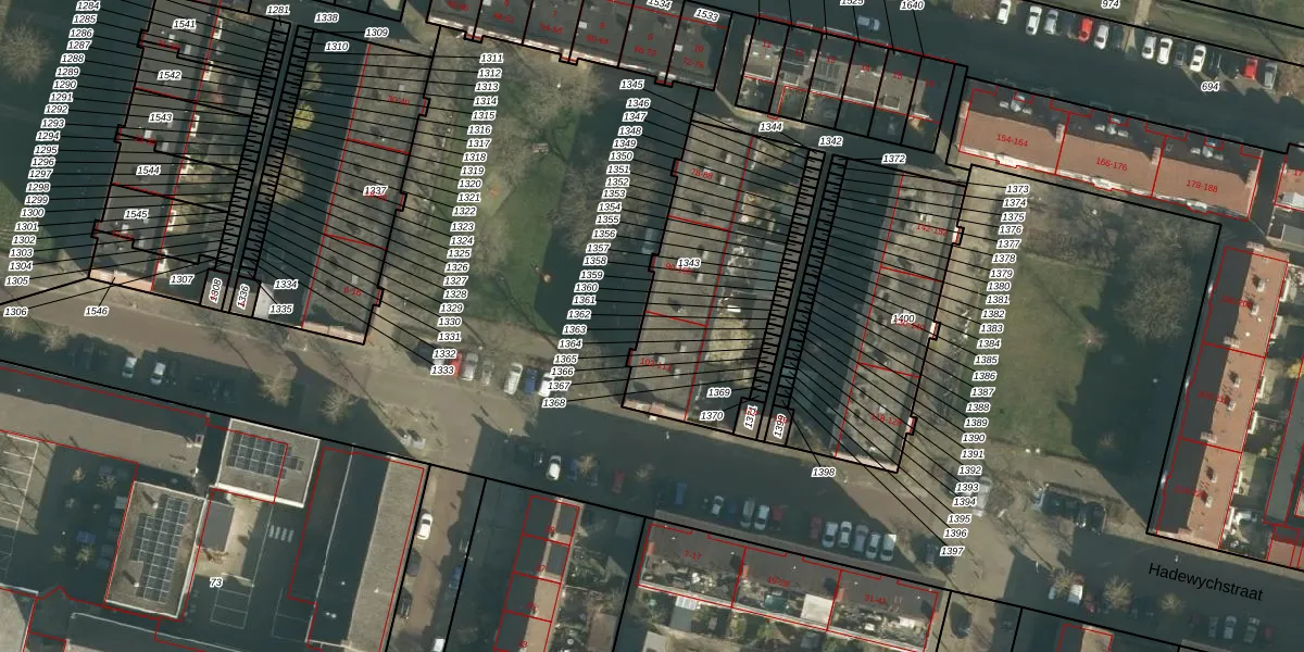 Hadewychstraat 102 is gelegen op kadastraal perceel HTG00N1343. Deze kadastrale aanduiding is uniek en wordt gebruikt door het Kadaster om eigendomsrechten en andere zakelijke rechten vast te leggen. Het perceel maakt onderdeel uit van de kadastrale gemeente 's-Hertogenbosch.