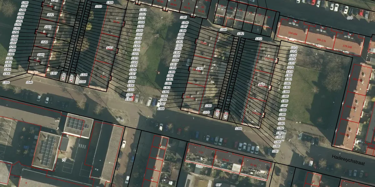 Het perceel waarop Hadewychstraat 108 staat heeft een oppervlakte van 827 m². Dit is een groot perceel. De perceeloppervlakte wordt geregistreerd door het Kadaster. Gedetailleerde informatie over de maten van dit perceel kunt u vinden in het rapport Kadastrale kaart met maatvoering van Hadewychstraat 108.