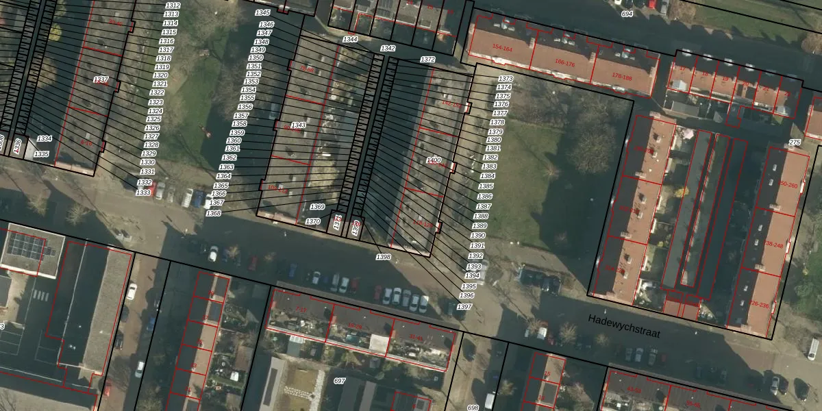 Hadewychstraat 128 is gelegen op kadastraal perceel HTG00N1400. Deze kadastrale aanduiding is uniek en wordt gebruikt door het Kadaster om eigendomsrechten en andere zakelijke rechten vast te leggen. Het perceel maakt onderdeel uit van de kadastrale gemeente 's-Hertogenbosch.
