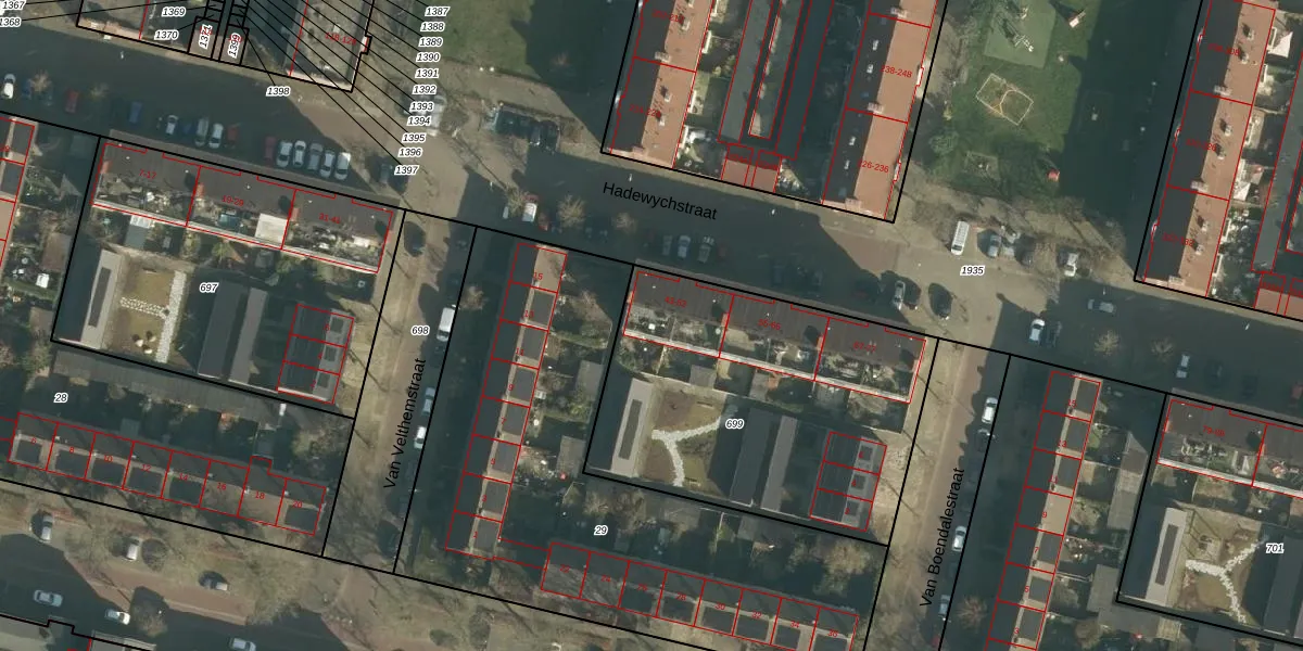 Hadewychstraat 47 is gelegen op kadastraal perceel HTG00N699. Deze kadastrale aanduiding is uniek en wordt gebruikt door het Kadaster om eigendomsrechten en andere zakelijke rechten vast te leggen. Het perceel maakt onderdeel uit van de kadastrale gemeente 's-Hertogenbosch.