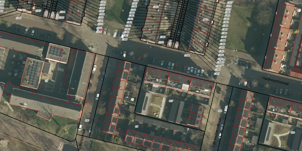 Hadewychstraat 9 is gelegen op kadastraal perceel HTG00N697. Deze kadastrale aanduiding is uniek en wordt gebruikt door het Kadaster om eigendomsrechten en andere zakelijke rechten vast te leggen. Het perceel maakt onderdeel uit van de kadastrale gemeente 's-Hertogenbosch.
