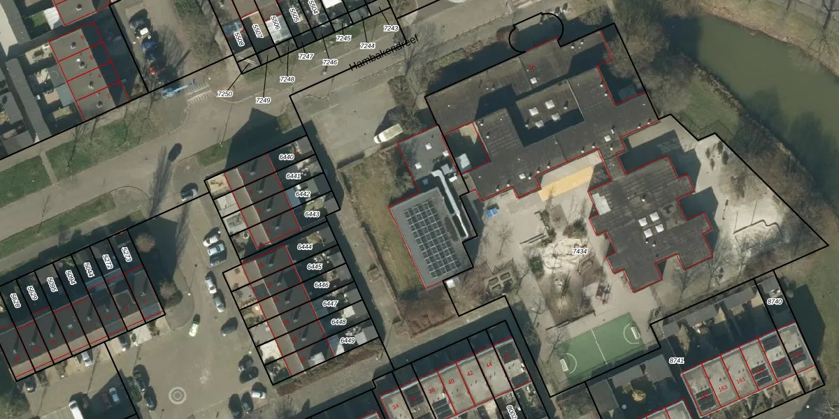 Het perceel waarop Hambakendreef 2-B staat heeft een oppervlakte van 4,3 ha. Dit is een zeer groot perceel. De perceeloppervlakte wordt geregistreerd door het Kadaster. Gedetailleerde informatie over de maten van dit perceel kunt u vinden in het rapport Kadastrale kaart met maatvoering van Hambakendreef 2-B.