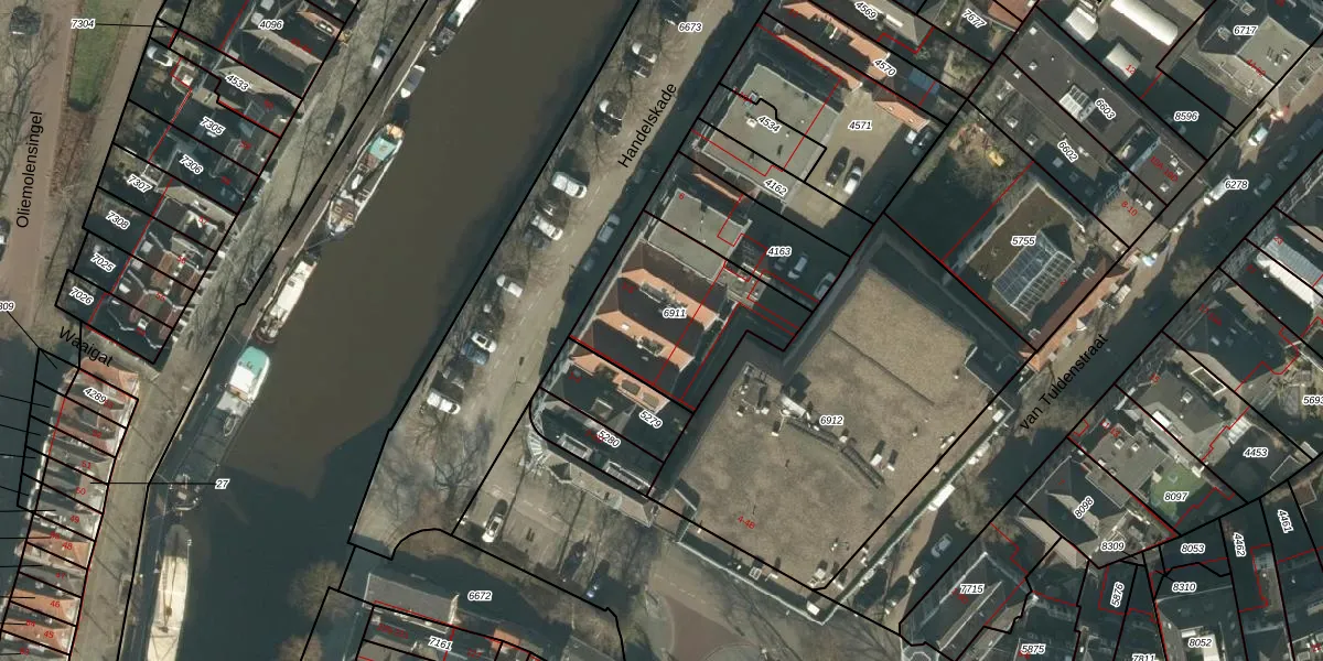 Het perceel waarop Handelskade 4-D staat heeft een oppervlakte van 553 m². Dit is een groot perceel. De perceeloppervlakte wordt geregistreerd door het Kadaster. Gedetailleerde informatie over de maten van dit perceel kunt u vinden in het rapport Kadastrale kaart met maatvoering van Handelskade 4-D.