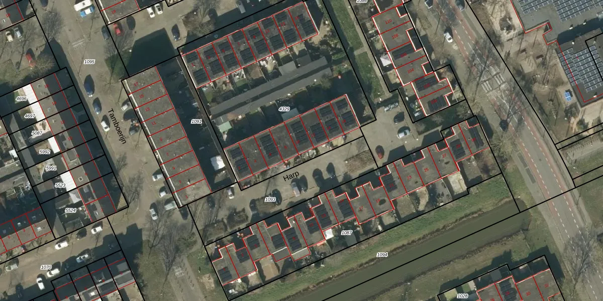 Het perceel waarop Harp 10 staat heeft een oppervlakte van 2578 m². Dit is een zeer groot perceel. De perceeloppervlakte wordt geregistreerd door het Kadaster. Gedetailleerde informatie over de maten van dit perceel kunt u vinden in het rapport Kadastrale kaart met maatvoering van Harp 10.
