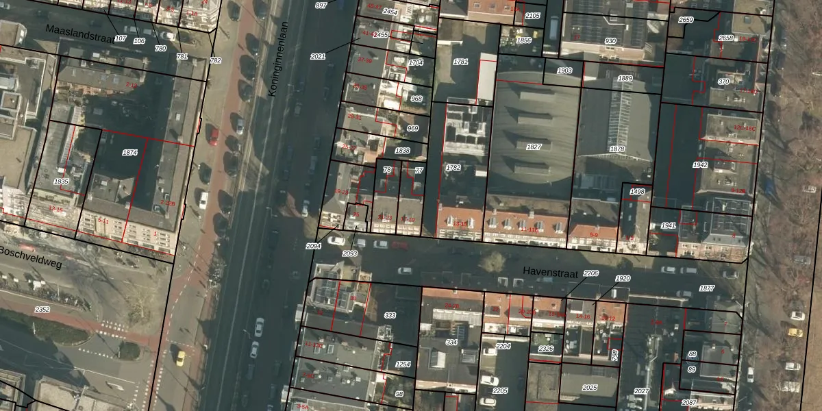 Het adres ligt op het perceel HTG00-I-77, dat zich in de kadastrale gemeente 's-Hertogenbosch bevindt. Het perceel is kleiner dan gemiddeld in 's-Hertogenbosch. Het perceel is 108 m² groot, terwijl het gemiddelde ligt op 1695,24 m². Het kleinste perceel in de kadastrale gemeente is 0 m² groot. De grootste perceeloppervlakte is 55,1 ha. Er zijn 2 adressen aanwezig op het perceel. In de Basisregistratie Kadaster (BRK) werden de grenzen van het perceel geregistreerd op 21-07-2005.