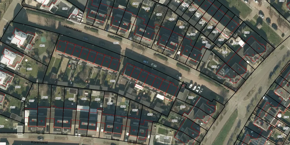 Het perceel waarop Haverakker 10 staat heeft een oppervlakte van 2595 m². Dit is een zeer groot perceel. De perceeloppervlakte wordt geregistreerd door het Kadaster. Gedetailleerde informatie over de maten van dit perceel kunt u vinden in het rapport Kadastrale kaart met maatvoering van Haverakker 10.