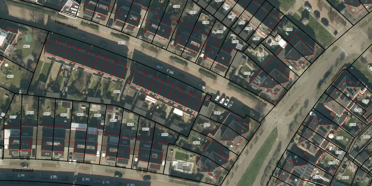 Het perceel waarop Haverakker 4 staat heeft een oppervlakte van 2595 m². Dit is een zeer groot perceel. De perceeloppervlakte wordt geregistreerd door het Kadaster. Gedetailleerde informatie over de maten van dit perceel kunt u vinden in het rapport Kadastrale kaart met maatvoering van Haverakker 4.