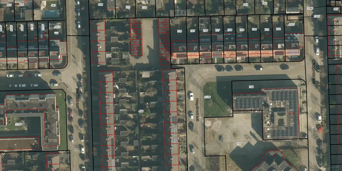 Het perceel waarop Haydnstraat 19 staat heeft een oppervlakte van 5520 m². Dit is een zeer groot perceel. De perceeloppervlakte wordt geregistreerd door het Kadaster. Gedetailleerde informatie over de maten van dit perceel kunt u vinden in het rapport Kadastrale kaart met maatvoering van Haydnstraat 19.