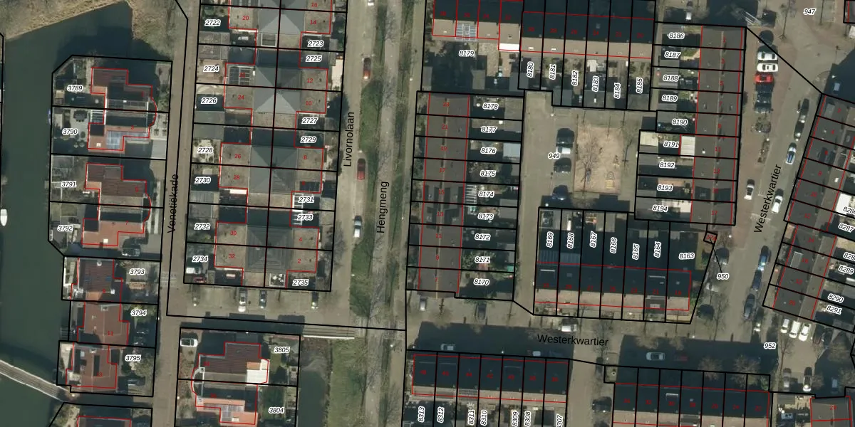 Gebruik de zoekbalk of klik op een perceel voor informatie over de adressen binnen dit perceel.