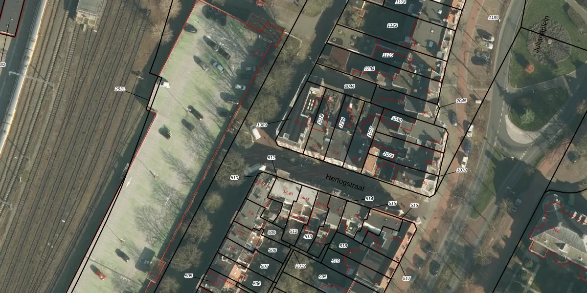 Het perceel waarop Hertogstraat 17 staat heeft een oppervlakte van 206 m². Dit is een middelgroot perceel. De perceeloppervlakte wordt geregistreerd door het Kadaster. Gedetailleerde informatie over de maten van dit perceel kunt u vinden in het rapport Kadastrale kaart met maatvoering van Hertogstraat 17.