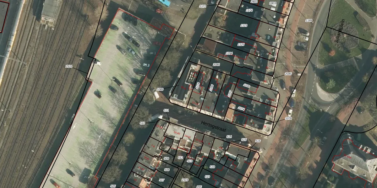 Het perceel waarop Hertogstraat 27 staat heeft een oppervlakte van 206 m². Dit is een middelgroot perceel. De perceeloppervlakte wordt geregistreerd door het Kadaster. Gedetailleerde informatie over de maten van dit perceel kunt u vinden in het rapport Kadastrale kaart met maatvoering van Hertogstraat 27.