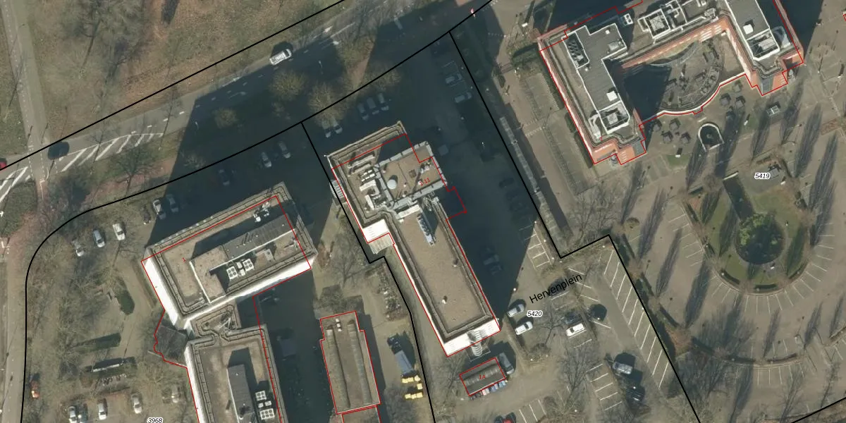 Het perceel waarop Hervenplein 9 staat heeft een oppervlakte van 5391 m². Dit is een zeer groot perceel. De perceeloppervlakte wordt geregistreerd door het Kadaster. Gedetailleerde informatie over de maten van dit perceel kunt u vinden in het rapport Kadastrale kaart met maatvoering van Hervenplein 9.