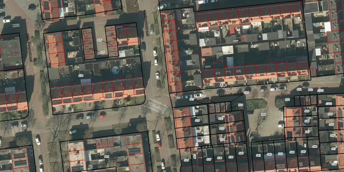 Het perceel waarop Hesselsstraat 50 staat heeft een oppervlakte van 3874 m². Dit is een zeer groot perceel. De perceeloppervlakte wordt geregistreerd door het Kadaster. Gedetailleerde informatie over de maten van dit perceel kunt u vinden in het rapport Kadastrale kaart met maatvoering van Hesselsstraat 50.