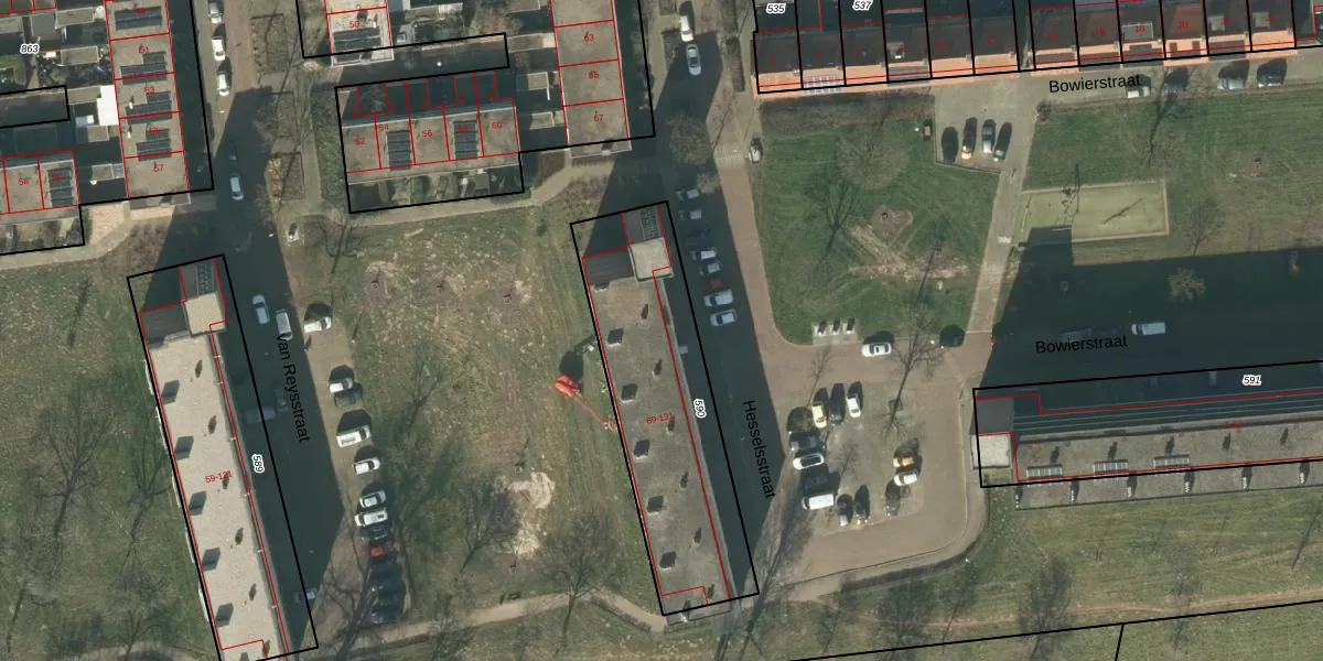 Het perceel waarop Hesselsstraat 77 staat heeft een oppervlakte van 906 m². Dit is een groot perceel. De perceeloppervlakte wordt geregistreerd door het Kadaster. Gedetailleerde informatie over de maten van dit perceel kunt u vinden in het rapport Kadastrale kaart met maatvoering van Hesselsstraat 77.