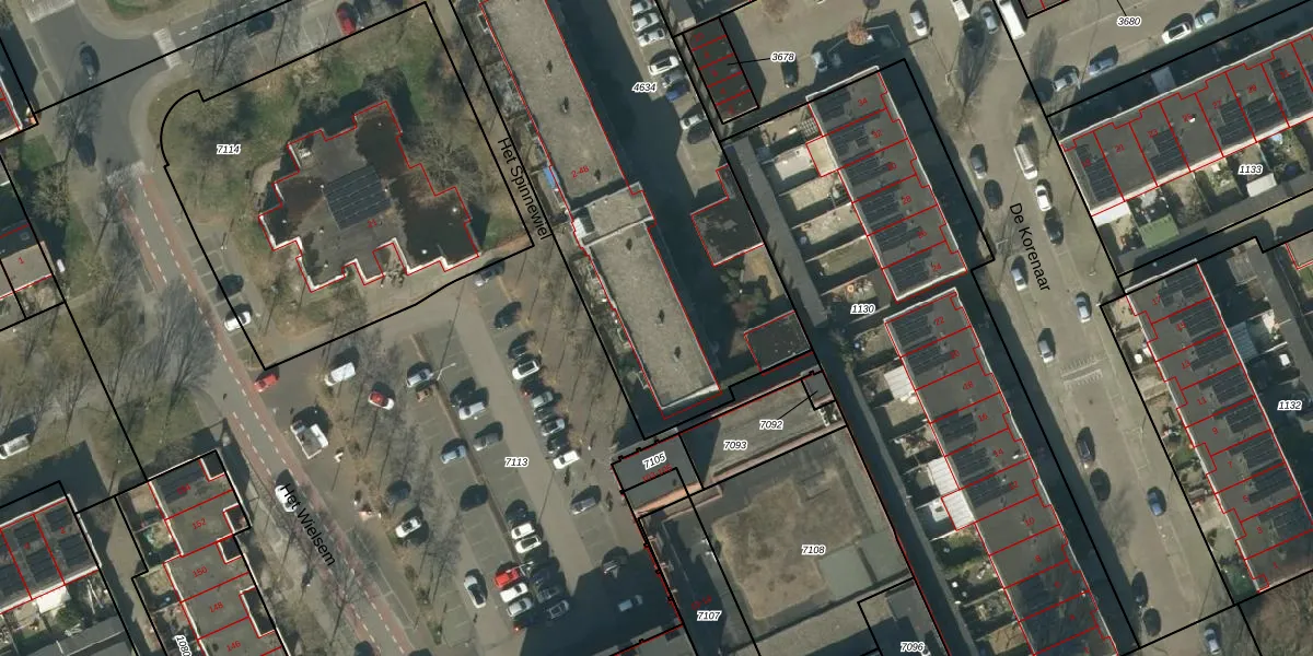 Het perceel waarop Het Spinnewiel 30 staat heeft een oppervlakte van 2360 m². Dit is een zeer groot perceel. De perceeloppervlakte wordt geregistreerd door het Kadaster. Gedetailleerde informatie over de maten van dit perceel kunt u vinden in het rapport Kadastrale kaart met maatvoering van Het Spinnewiel 30.