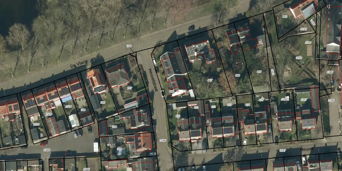 Het perceel waarop Heuvelstraat 14 staat heeft een oppervlakte van 603 m². Dit is een groot perceel. De perceeloppervlakte wordt geregistreerd door het Kadaster. Gedetailleerde informatie over de maten van dit perceel kunt u vinden in het rapport Kadastrale kaart met maatvoering van Heuvelstraat 14.