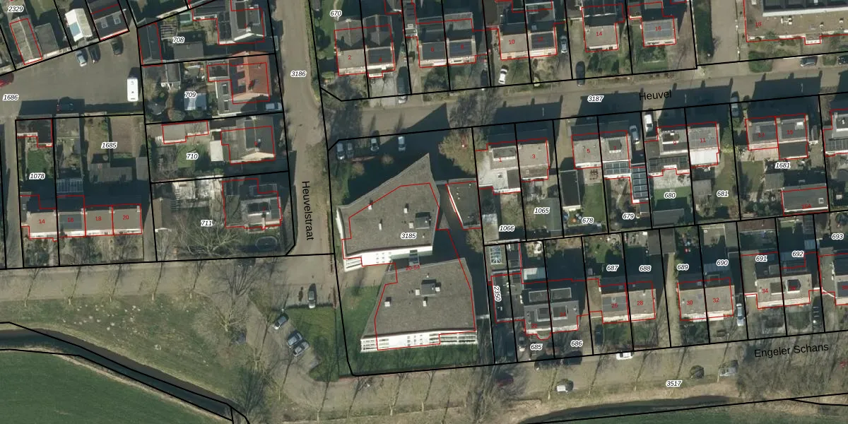 Heuvelstraat 48 is gelegen op kadastraal perceel HTG00R3185. Deze kadastrale aanduiding is uniek en wordt gebruikt door het Kadaster om eigendomsrechten en andere zakelijke rechten vast te leggen. Het perceel maakt onderdeel uit van de kadastrale gemeente 's-Hertogenbosch.