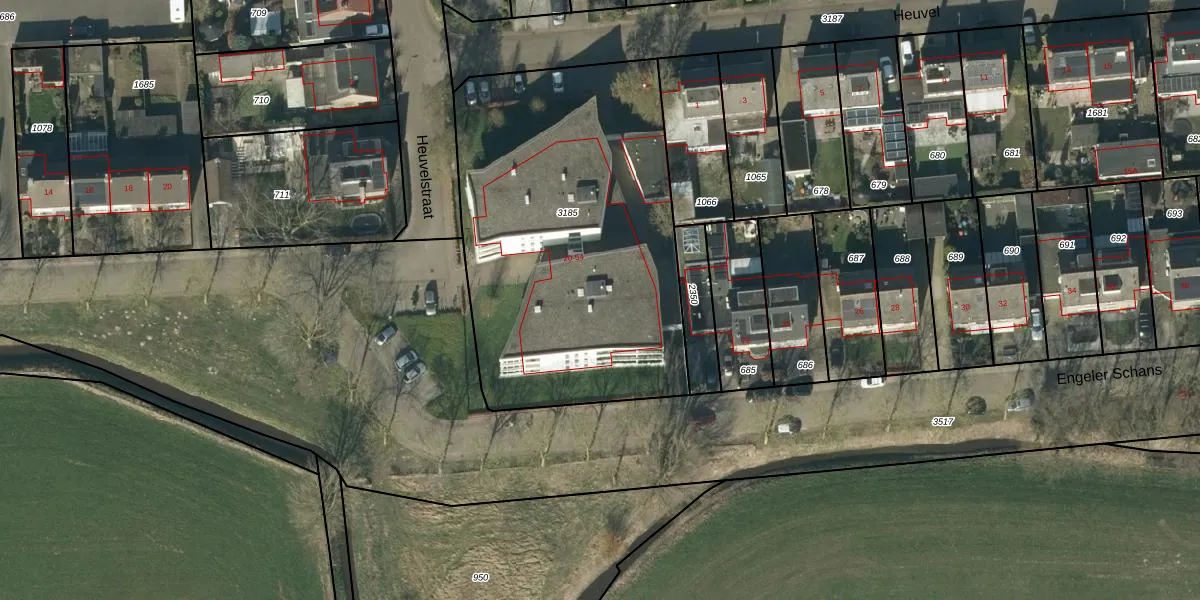 Het perceel waarop Heuvelstraat 52 staat heeft een oppervlakte van 1944 m². Dit is een zeer groot perceel. De perceeloppervlakte wordt geregistreerd door het Kadaster. Gedetailleerde informatie over de maten van dit perceel kunt u vinden in het rapport Kadastrale kaart met maatvoering van Heuvelstraat 52.